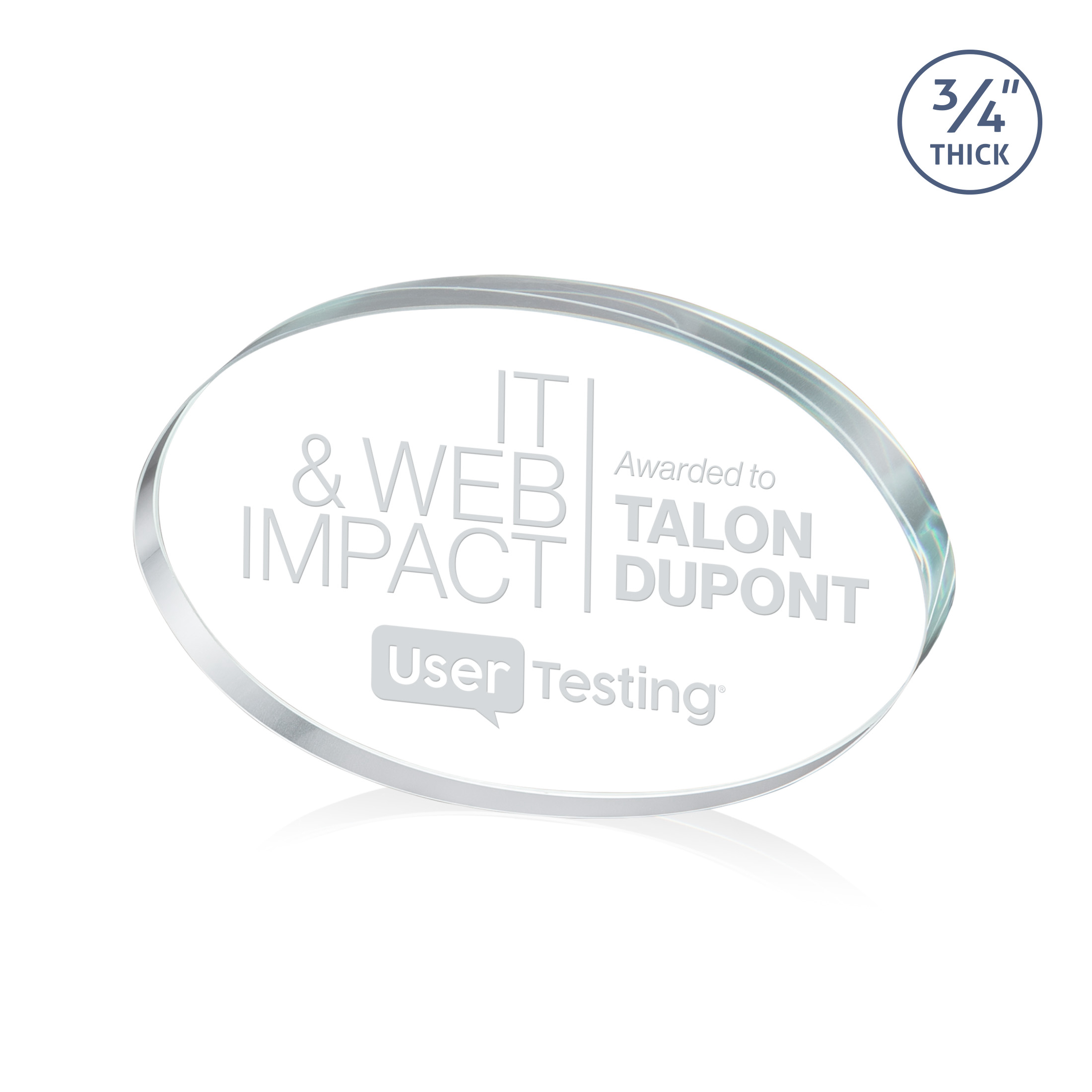 The Baldus desktop awards feature a 3/4" thick freestanding oval starfire disk that will compliment any desk or office. A delightful award that is perfect for recognizing any accomplishment, big or small.