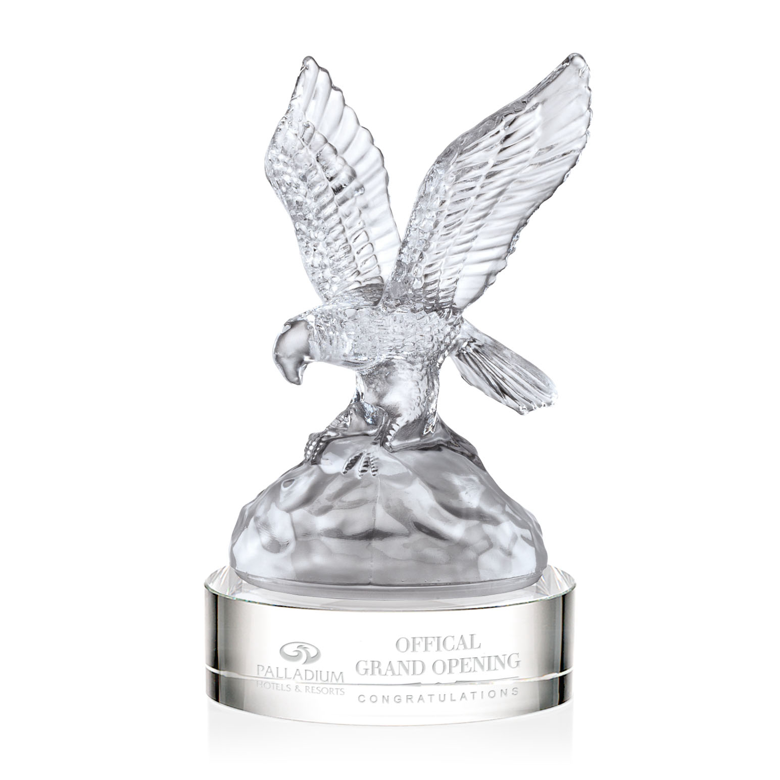Spectacular Optical Crystal Eagle molded with shimmering detail and mounted on a Large Optical Crystal base.