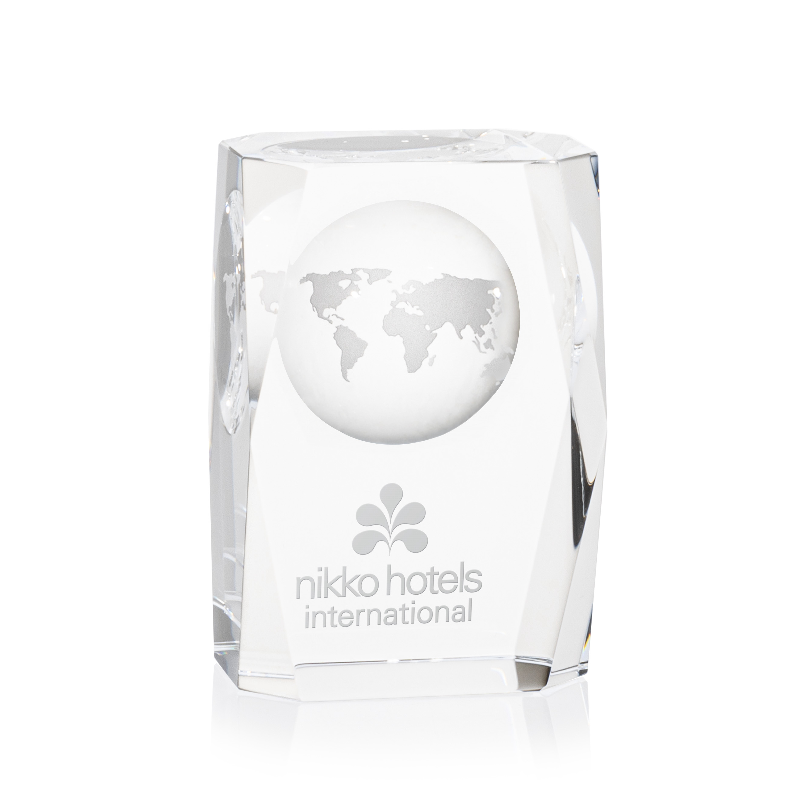 Crafted from premium optical crystal, the Falkirk Globe features a stunning 3D globe elegantly molded into the back, creating a captivating display of global excellence. Available in three sizes, it’s the perfect choice for recognizing achievements that transcend boundaries and inspire worldwide impact.