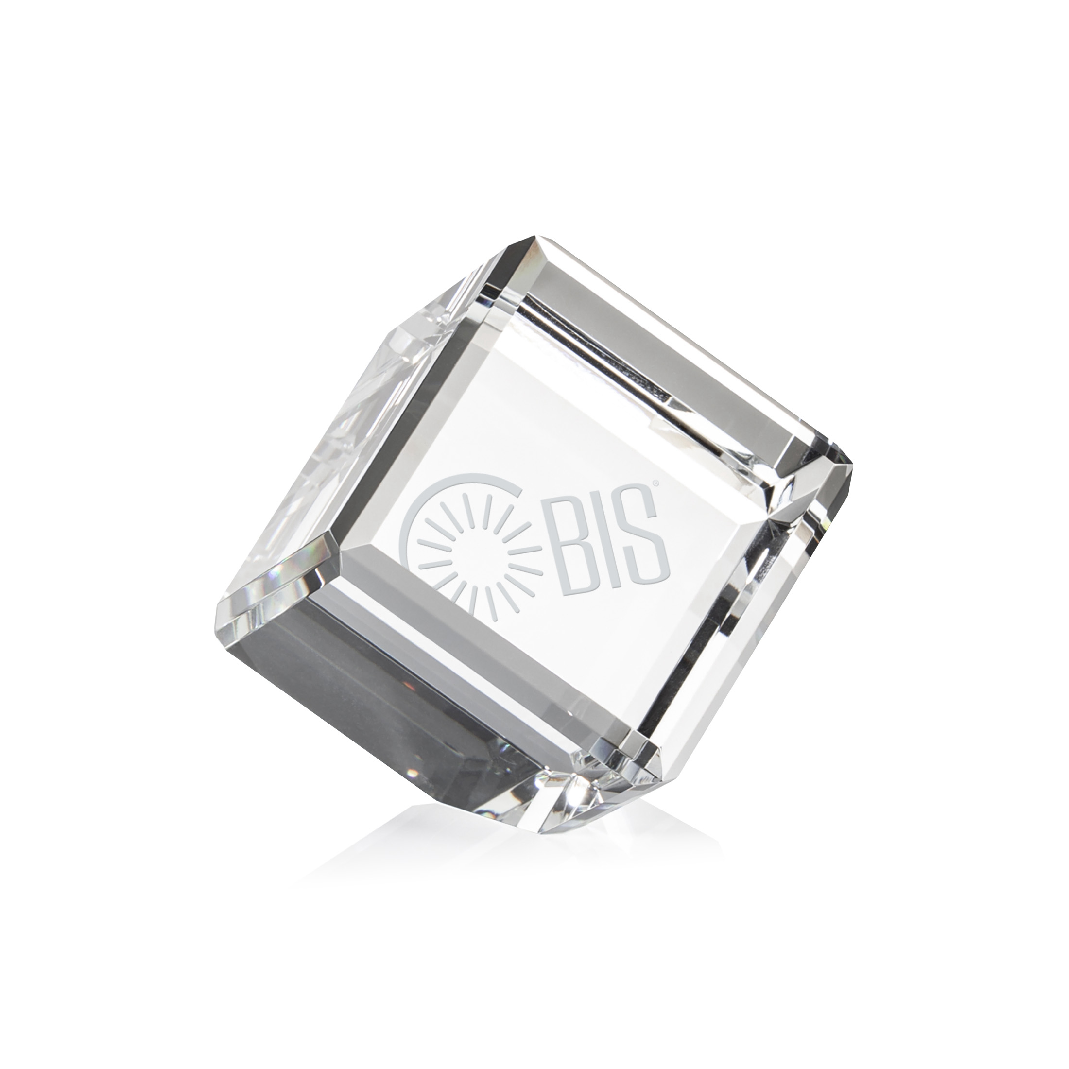 Magnificent clipped Optical Cube Award with sparkling double beveled edges all around. Available in 6 sizes.